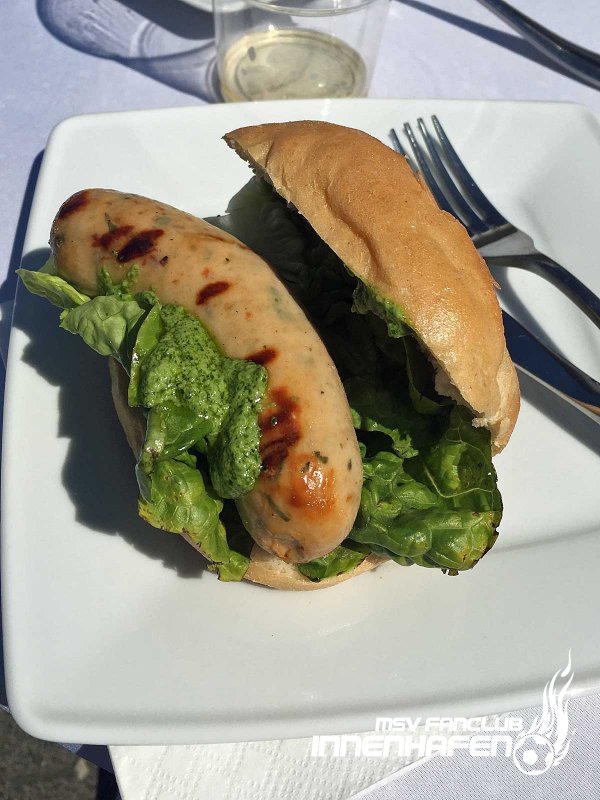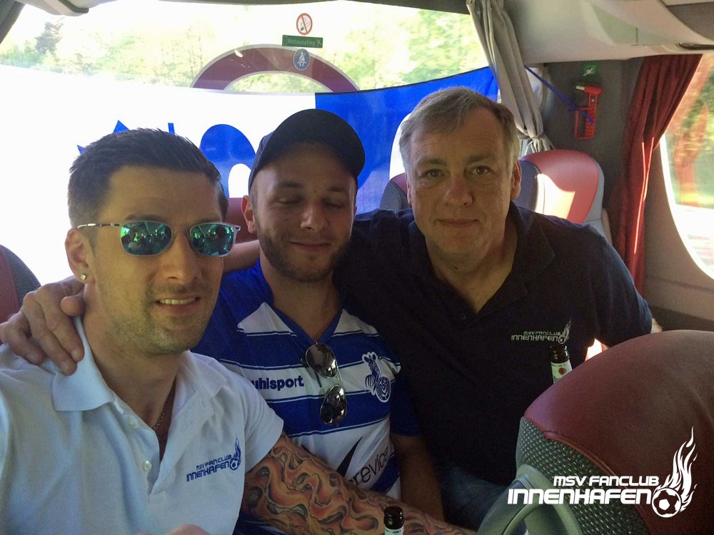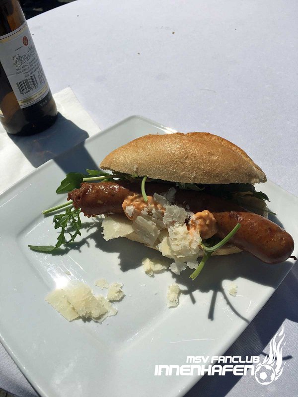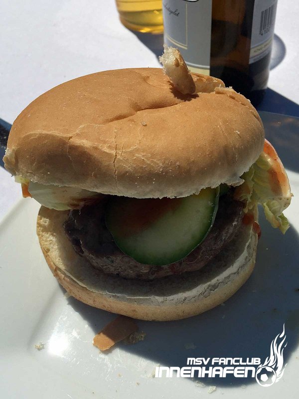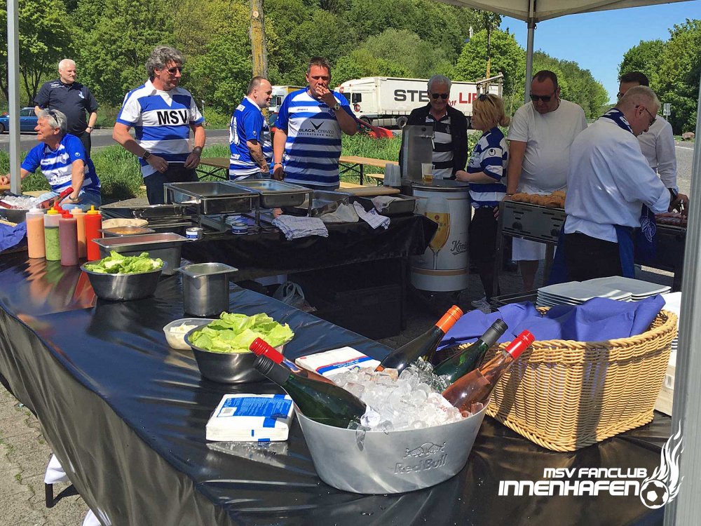 Gemeinsam mit dem MSV Caterer Feinkost Kersten ging es mit einem Doppeldecker nach Sandhausen. Auf einem Rastplatz wurden die MSV-Fans u.a. mit BRENDEL-Burgern verköstigt.